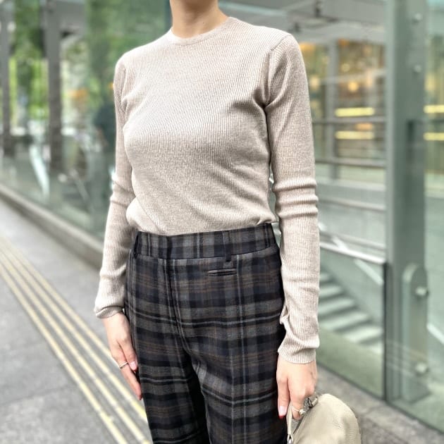 優しい陰影が楽しめるシンプルなJOHN SMEDLEYのニットは1枚でもインナーとしても◎ブランドとしても鮮度ある細めのリブニット、長めのレングスはタックインの収まりも良いですよ!