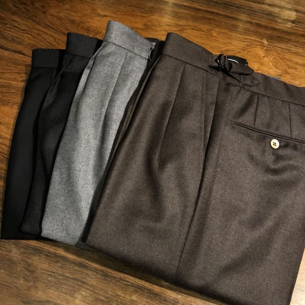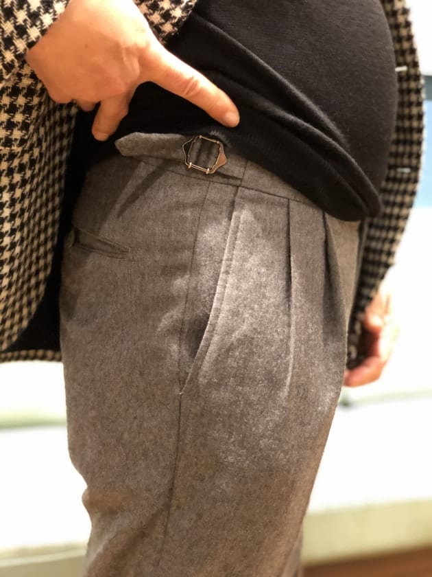 2プリーツでベルトレス、サイドアジャスター仕様とくれば、限られてきますね。
