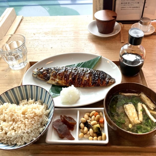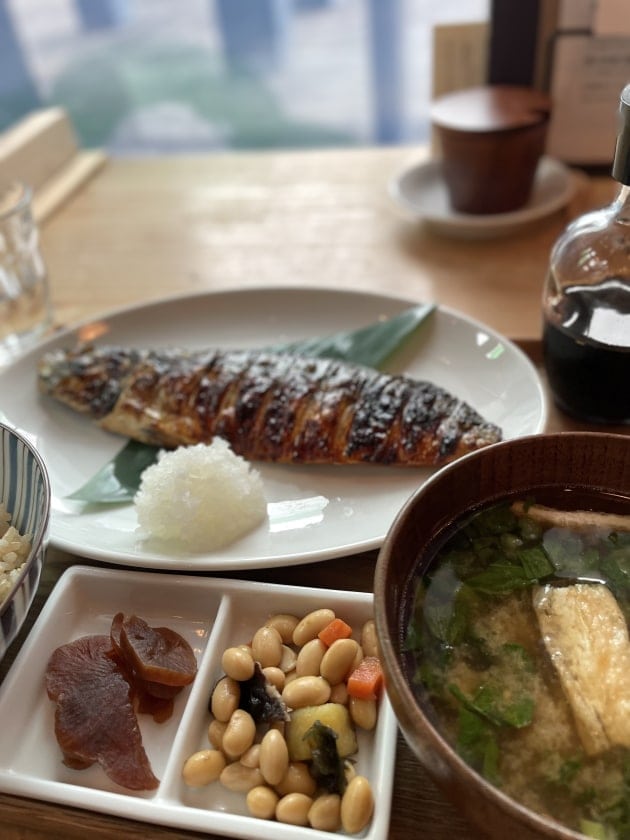 脂と塩気のバランスの取れたサバの干物は、無添加にこだわった越田商店と言う茨城県から卸している、知る人ぞ知る "すごい鯖"のようです。頭ごと食べられるそうで、頭までパリッと焼かれています。もはやパリッと焼かれすぎてどっちが頭か分からない程‥骨格ストレートです‥(最近覚えました‥)