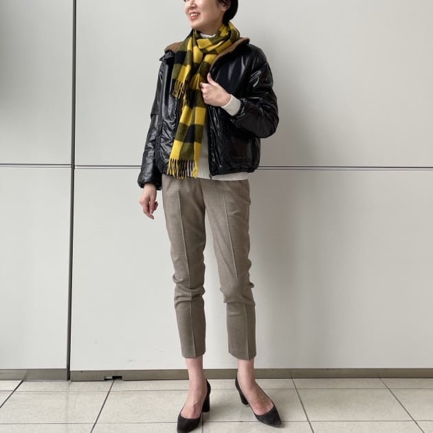 暗くなりがちな冬のコーディネートに、くすまないピンクベージュは顔写りも良く、一気に華やぎますし‥盛れますね‥