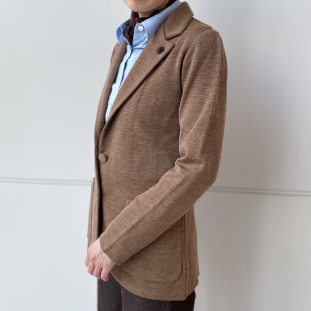 ジャケット+カシミヤコートの好きな組み合わせです。ジャケットは着膨れの心配のないLARDINIのニットジャケットを合わせています