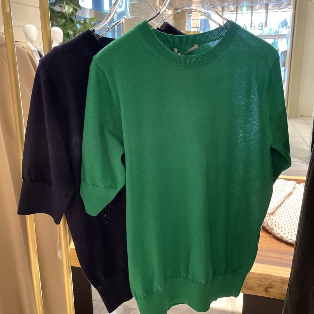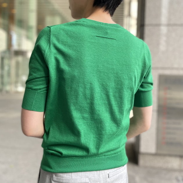 同じ素材のハーフスリーブ、こちらもサイズ2を着ています。鮮やかなグリーンも別注色です