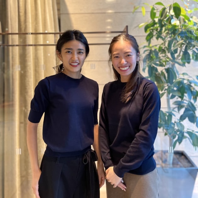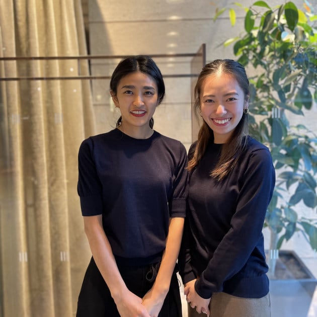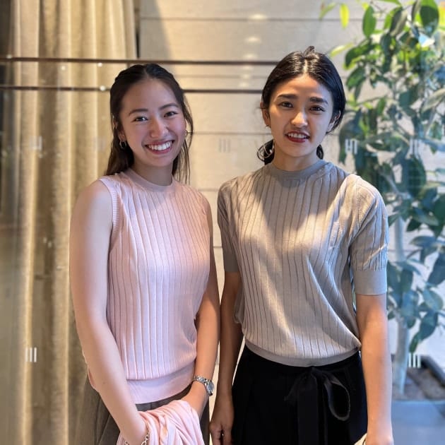 SLOANEのニットはサイズがあるのも嬉しいですよね。2人ともサイズ1を着用しています。