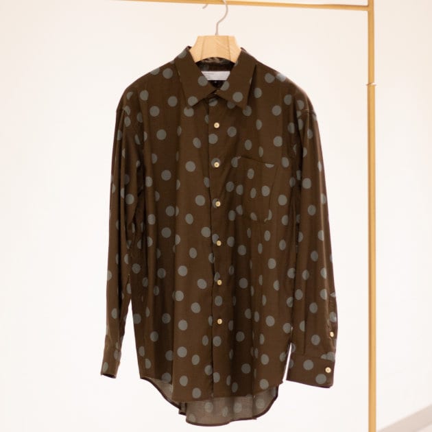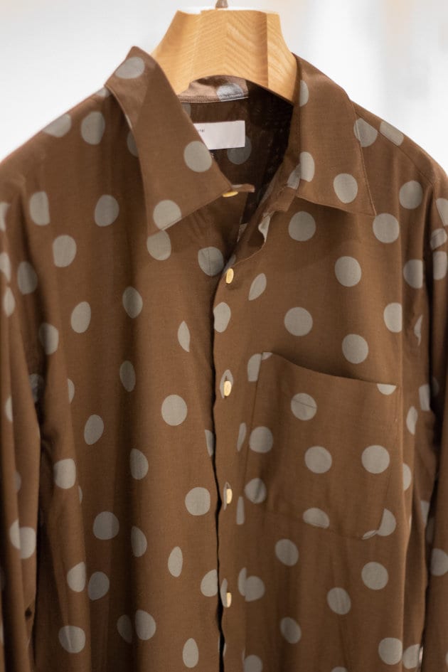 テロっとした生地に、大きめなコインドットが載せられたレトロムードなシャツです!