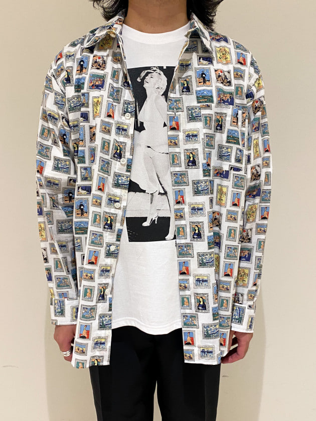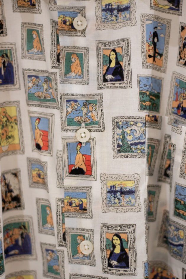 テロっとしたボディーに絵画をコミカルに崩した柄が面白いデザインなシャツです!