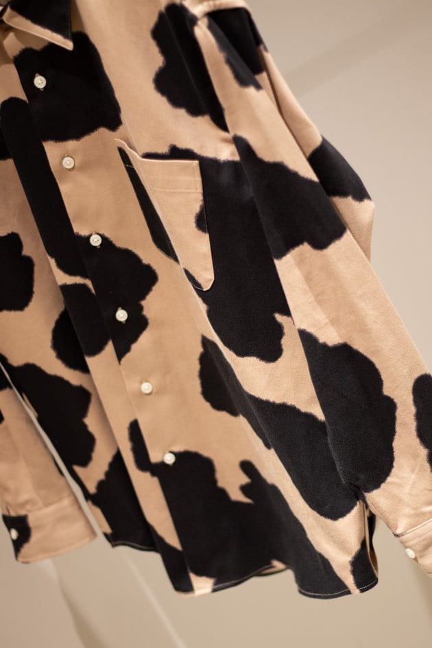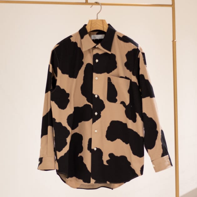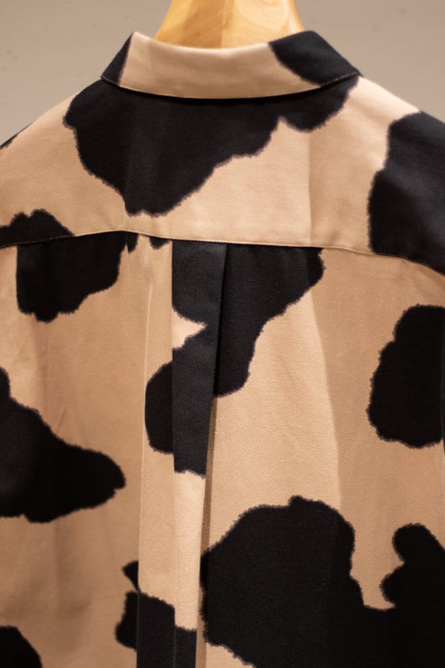 しっかりした厚みのあるツイル生地に染色によってカウパターンが表現されたシャツです!