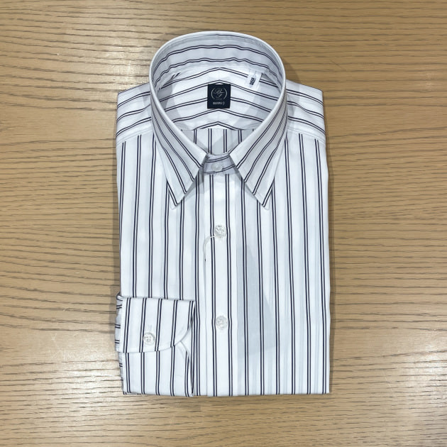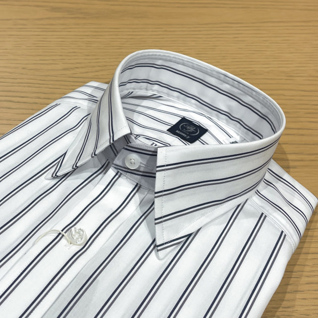 ストライプは他にも良い雰囲気なものありますが、タブカラーではなくレギュラーカラーなところが選んだポイントにもなっています。