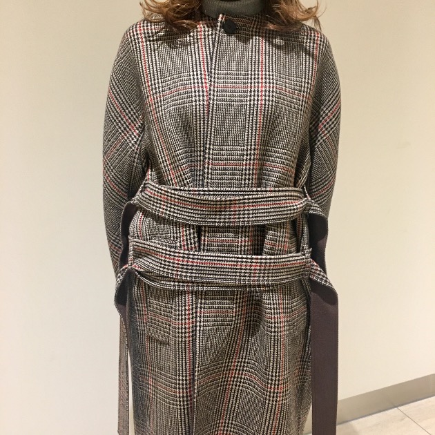 クラシカルな雰囲気で、トレンドのグレンチェック柄なノーカラーコート