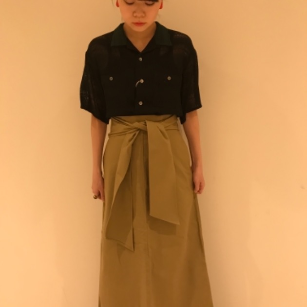マキシ丈のチノスカートで、リボンは取り外しが可能です。