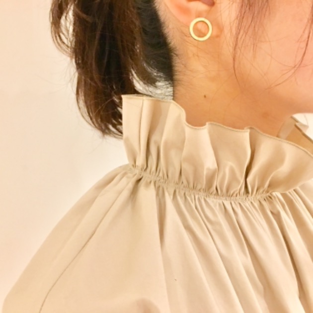 首周りのたっぷりよせたギャザーが素敵なブラウスです。