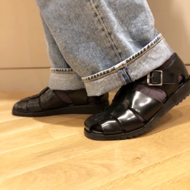 昨今の足元事情、トレンドから定番になりつつあります"グルカサンダル"をソックスを履いて秋仕様に。
