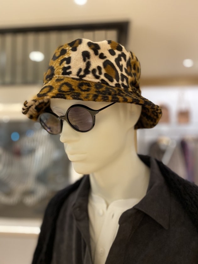 フェイクファーにレオパード柄がインパクト大なバケットハットは、要所要所にブラックを取り入れているので上手く纏まっています!