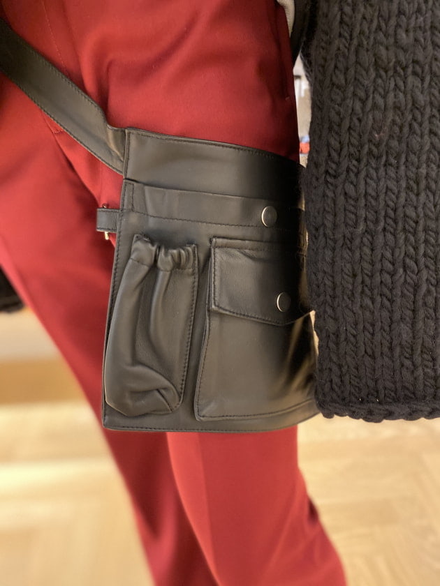 ウエストポーチはトップスのルーズさに合わせてルーズにつけています!