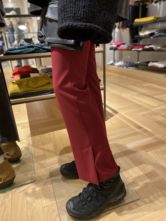パンツはトップスのルーズさとは打って変わり細めなフレアパンツで引き締めています!