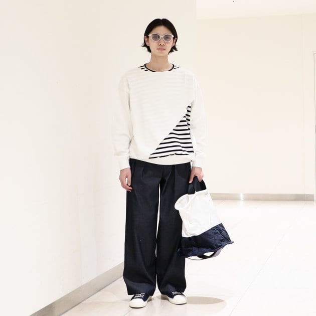 ホワイト×ネイビートーンでまとめたマリンテイストなスタイリングです!