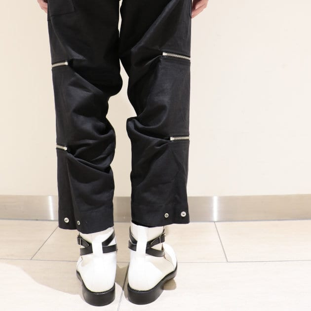 程よいゆったりしたシルエット、クロップド丈、ジップで長さの変更、裾のスナップボタンで細さの調節と、ディティール盛りだくさんです!