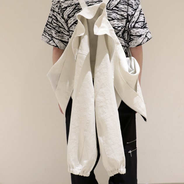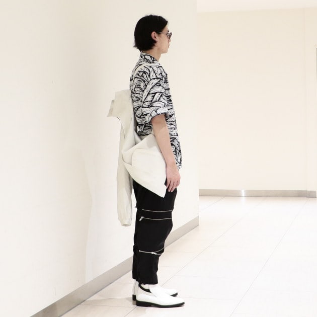 ジップを閉めると左右の柄が繋がり見え方が変わります!