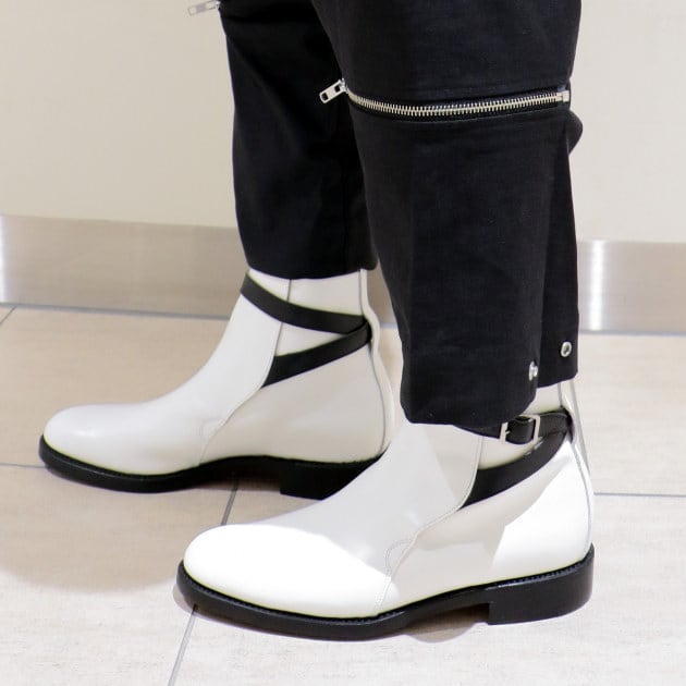 パンツがパンキッシュな雰囲気なので、素直にパンクロックを象徴するアイテムである〈GEORGE COX(ジョージコックス)〉のジョッパーブーツを合わせました!