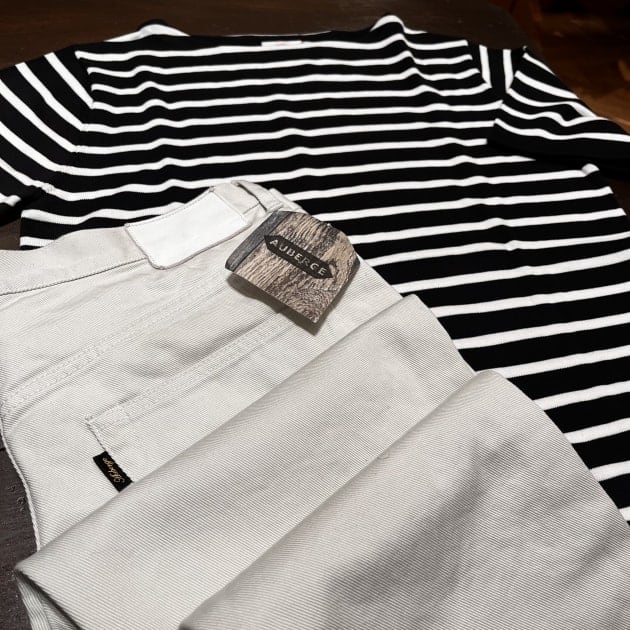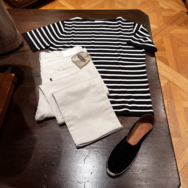 真っ白ではなく、ややOFF WHITE寄りなパンツがしっくりきますね。