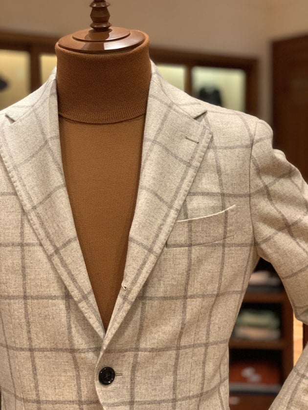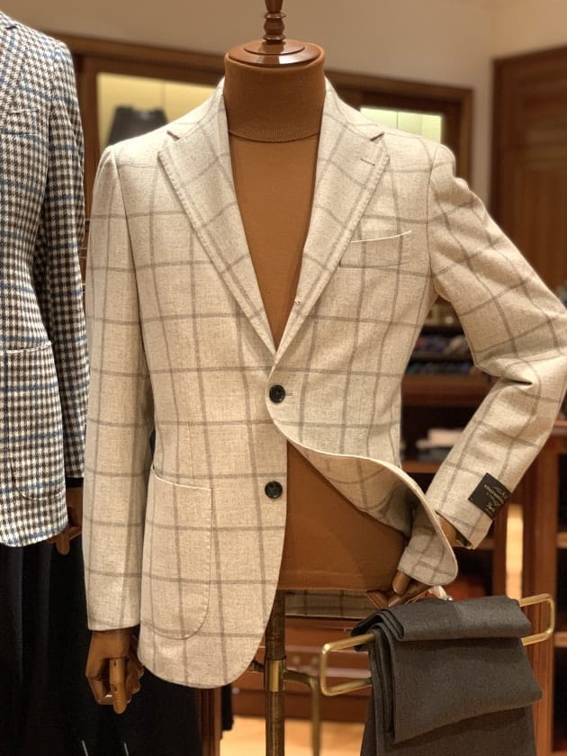 ベージュのトーンオントーンでウインドウペーンが入るこちらは、<Brilla per il gusto>のオリジナルジャケット。