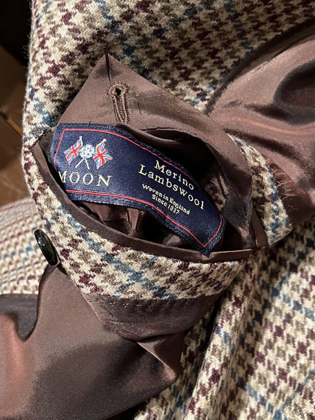 たまたまですが、内胸ポケットをひっくり返してみると、〈MOON〉社のネームが付いているではありませんか。