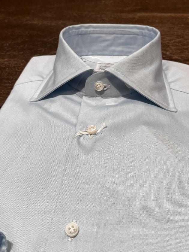 まずは首のフィッティングですが、手持ちの色々なシャツと比較するとネックポイントがかなり低く感じます。
