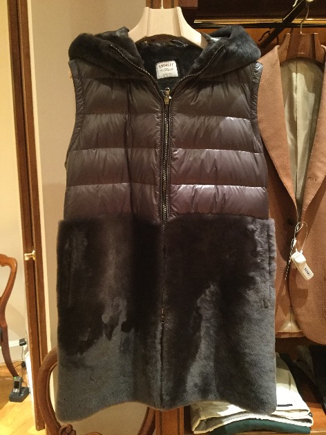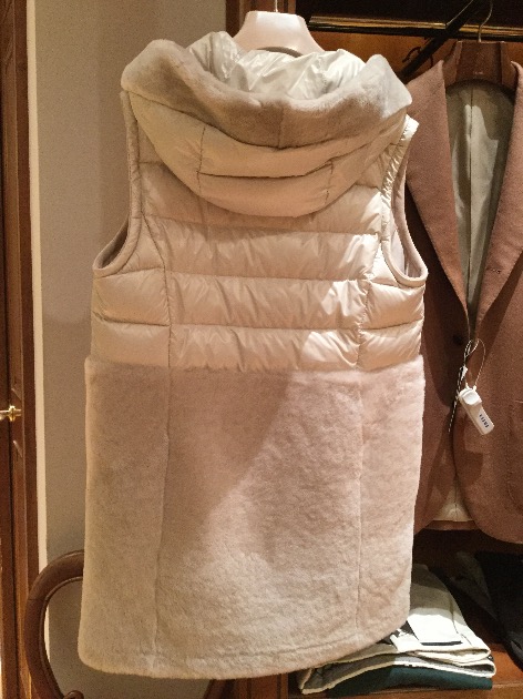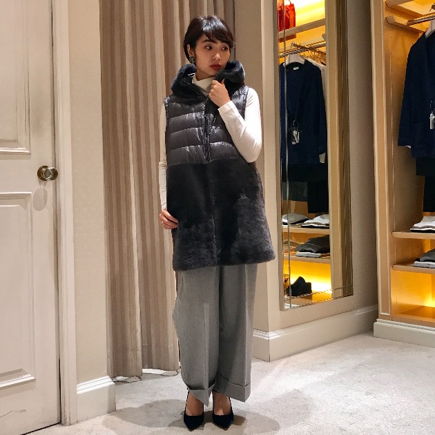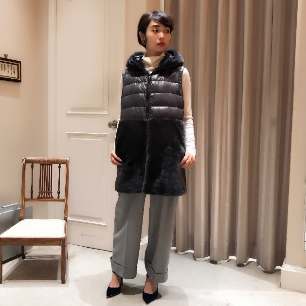 オープンカフェのテラスで、車に乗る時もそのまま着ていられる様なラグジュアリーなダウンのイメージでいかがでしょうか?