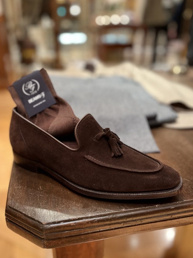 モデルは"WINDSOR" 国内ではBEAMSのみの展開です。低めのゴージラインでしたり、3パッチポケットでしたり、お洋服好きな感じと言いますかクラシックなルックスと言いますか。ただ着用してみるとこれが時代感に沿うような美しいルックスなのです。
