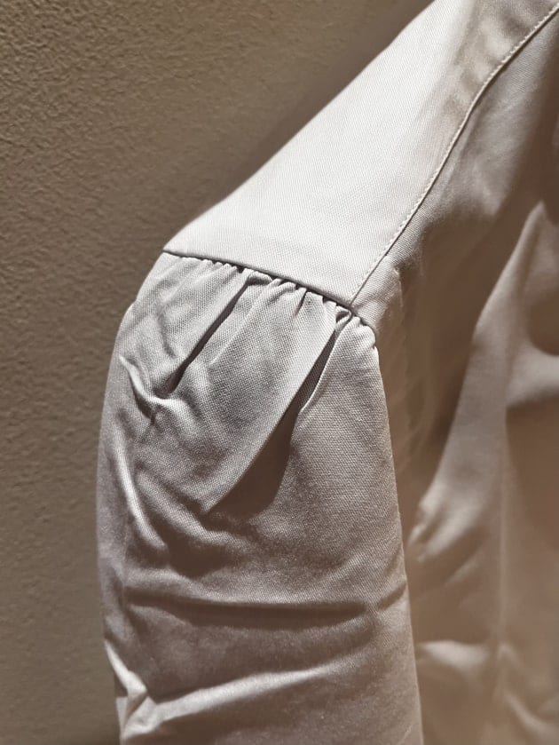 〈BORRIELLO〉と言えばこのギャザーの量ですよね。「これでもかっ!」てくらい入ってます。私もオーダー品を所有し愛用しておりますが、この既製品も負けず劣らずできっと満足してお召しいただける一枚です。着心地だけでなく、肩周りの雰囲気も良い。