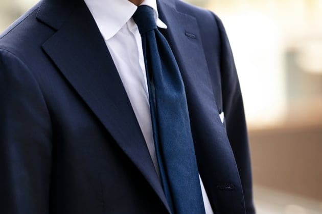 私のこの日の装いは、昨年の2月にオーダーした、〈Cesare Attolini〉のNAVYスーツをストイックかつシンプルに仕上げたスタイリングです。