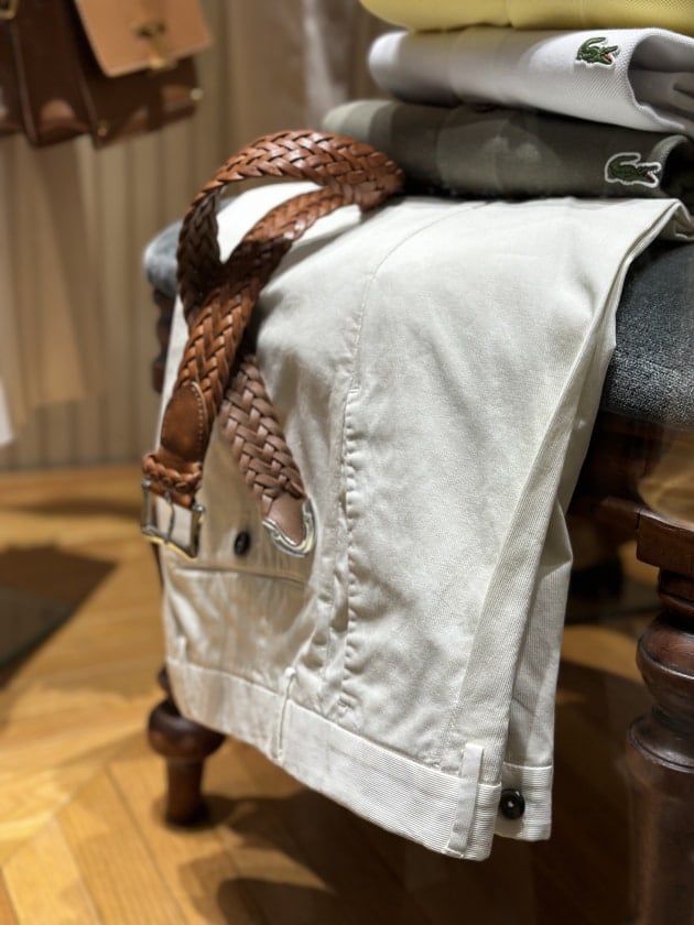 パンツもベージュで、少し色をずらしつつも全体のトーンは崩さずコーディネート。