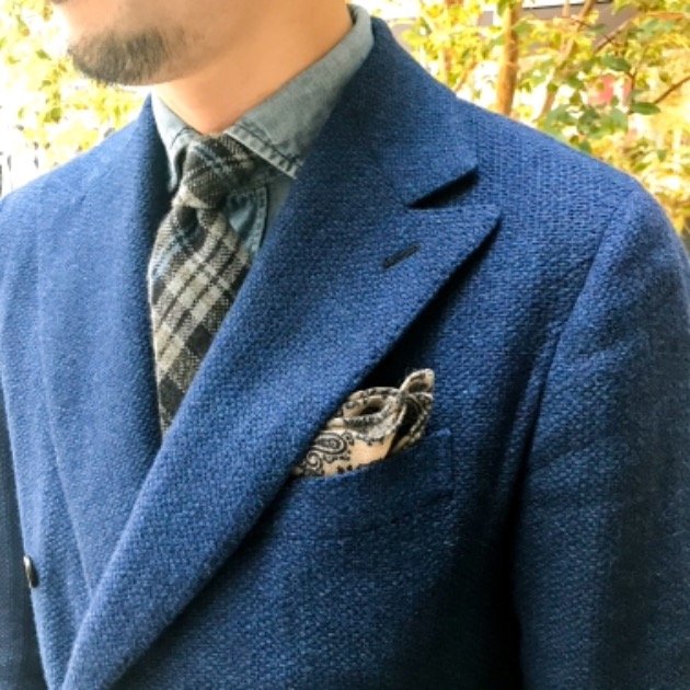 チェックタイとペイズリーチーフ。