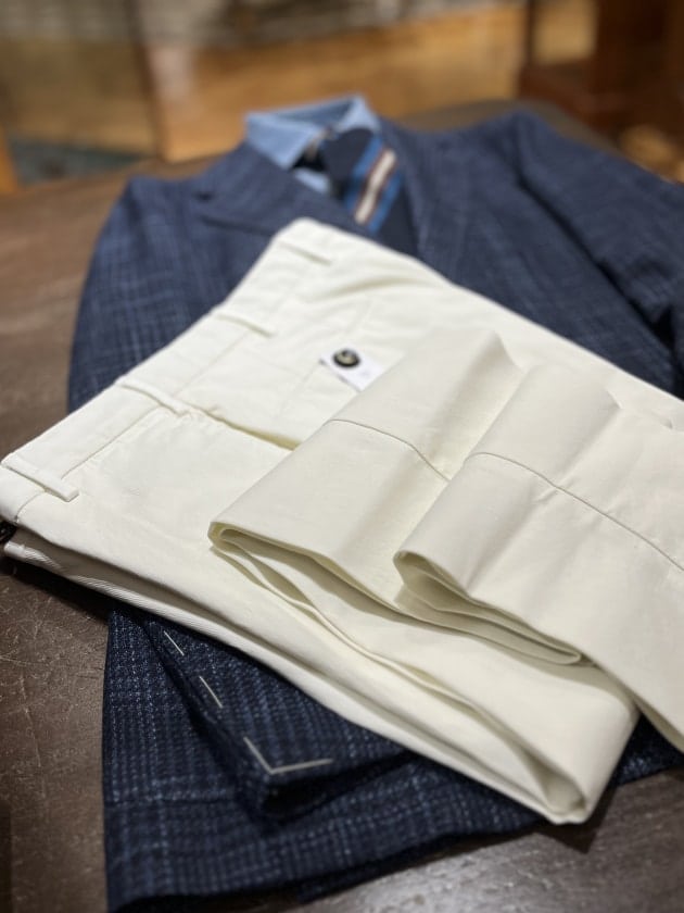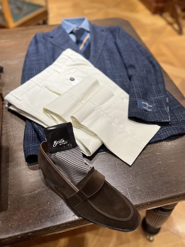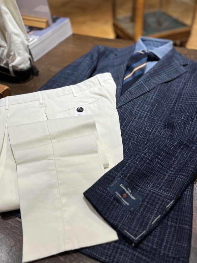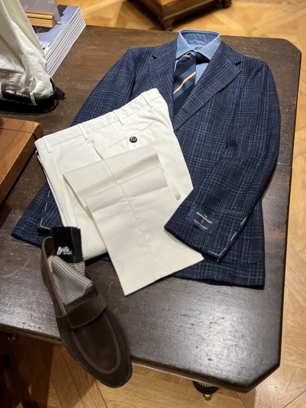 我々男性には欠かす事のできないNAVYジャケットですが、素材や柄で幅を持たせてみる事も楽しさであります。