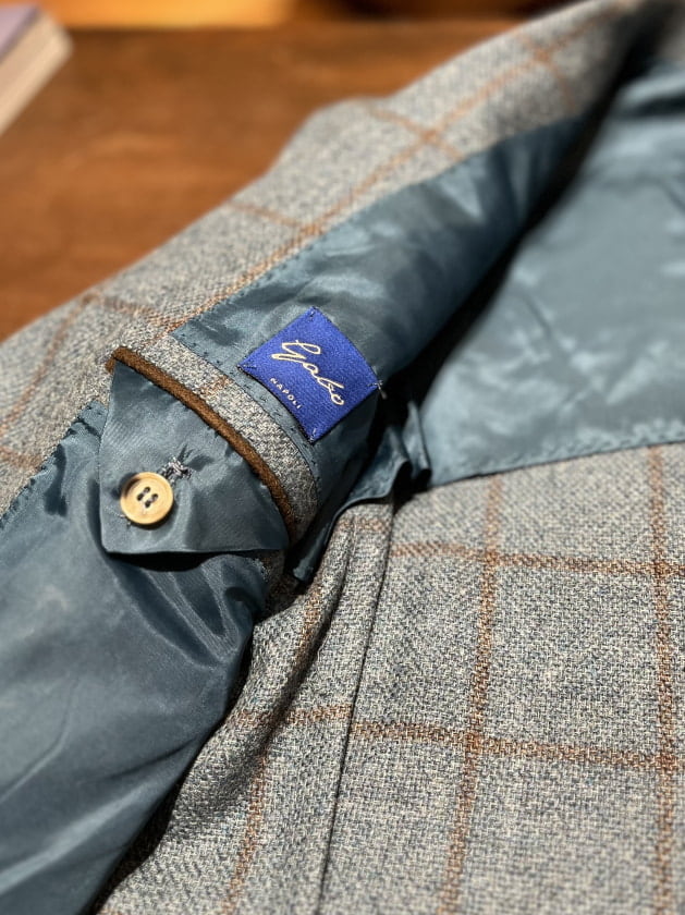襟の面構えはもちろん、ジャケットの命とも言っても過言ではない肩周りもしっかりとこだわりと技術が詰まっております。
