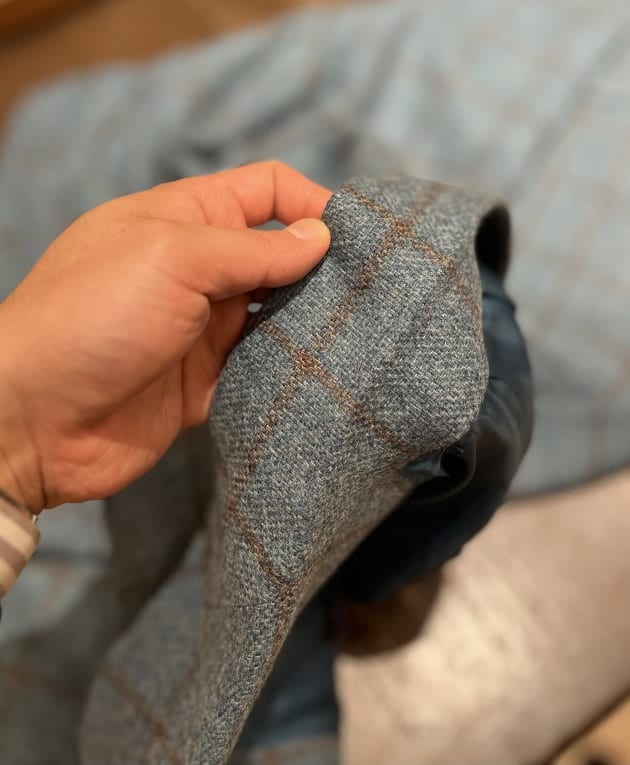 まずは生地から。〈Di Pray〉のウールリネン素材。