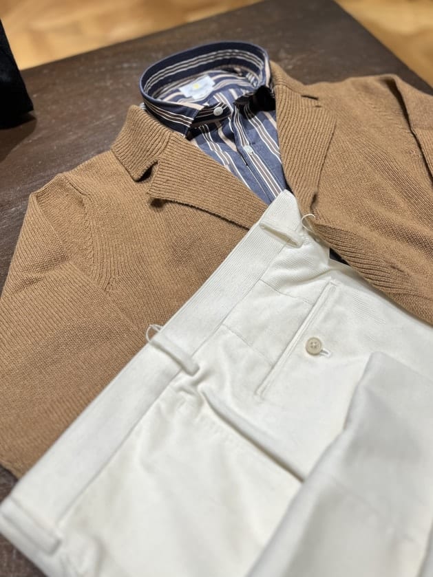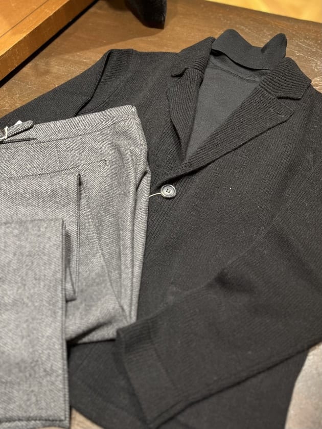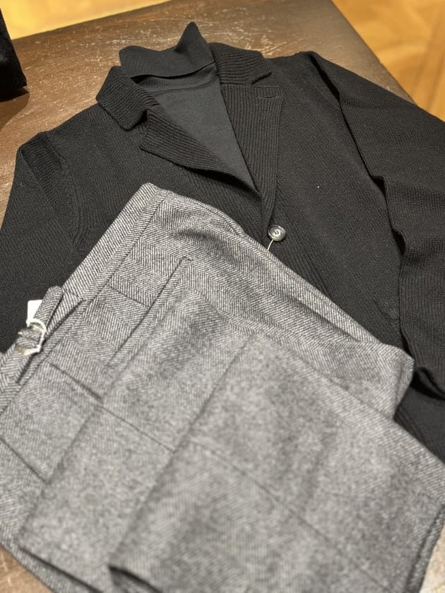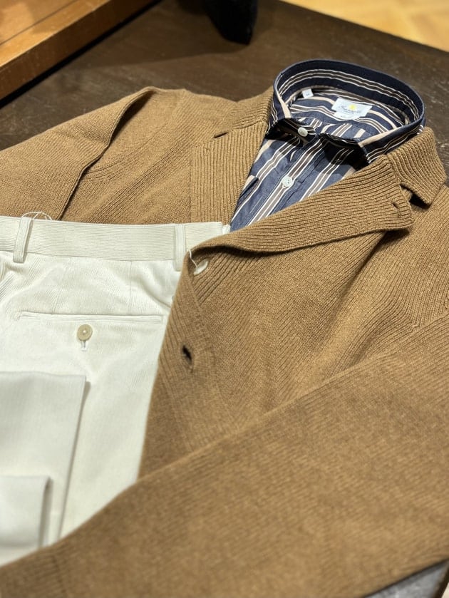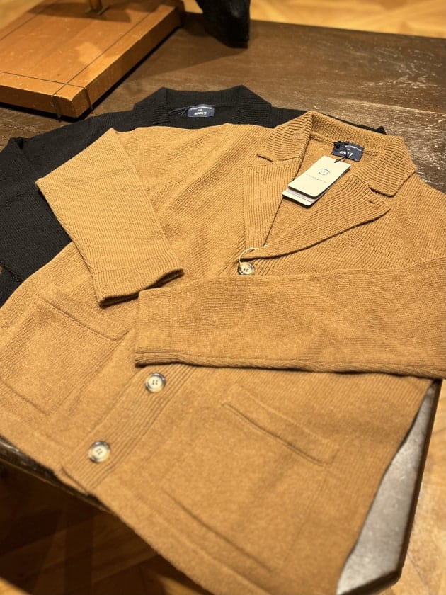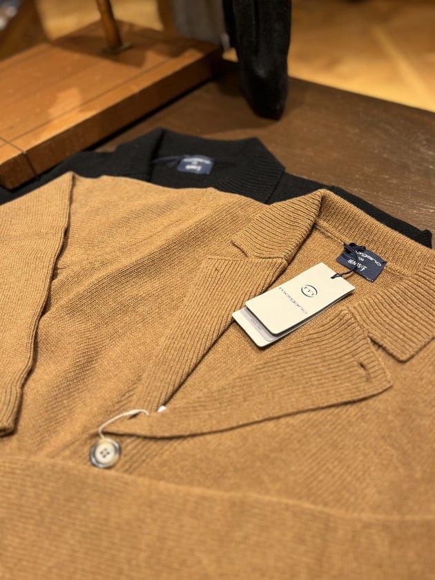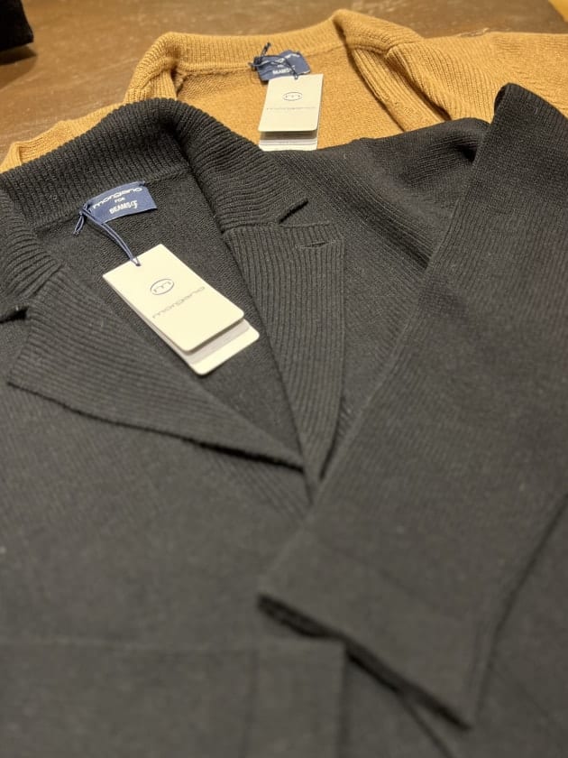 〈MORGANO〉より、別注のニットジャケットを今季ご用意しております。