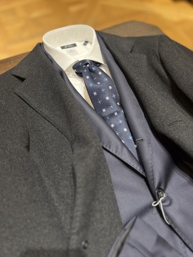 なんて事ないコーディネートかもしれませんが、普段のビジネスシーンではサラッとお召しいただけると売り手の自分として嬉しいです。