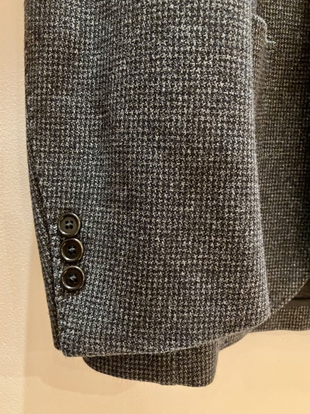 遠目で見ると無地のようにも見え、オーソドックスなデザインとも相まってカットソーをインナーとしたカジュアルな装いからタイドアップも含めて幅広いコーディネートに取り入れて頂けますよ。
