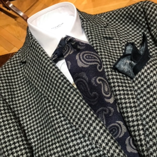 カシミヤ90%・ウール10%の白黒千鳥です。