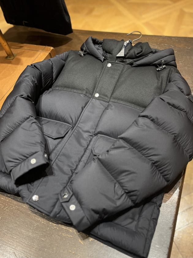 ベーシックなショート丈のダウンジャケット。フードのアクセントも効いております。