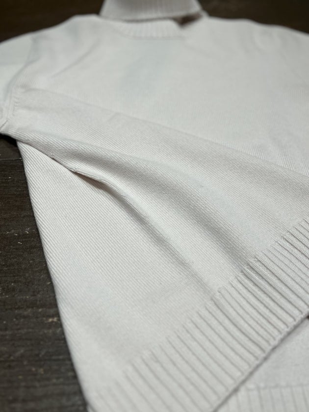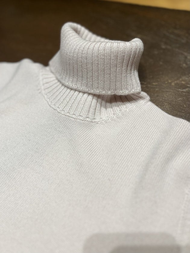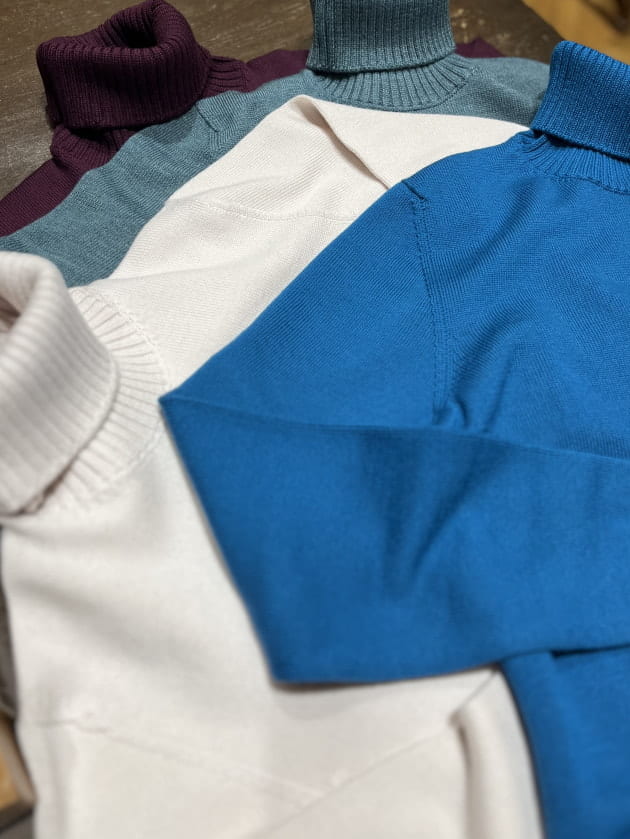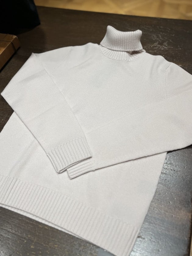 タートルネックが苦手という方も一定数いらっしゃいますが、こちらは首周りの締めつけがキツくなく柔らかなフィッティングですので克服していただけるかもしれません。