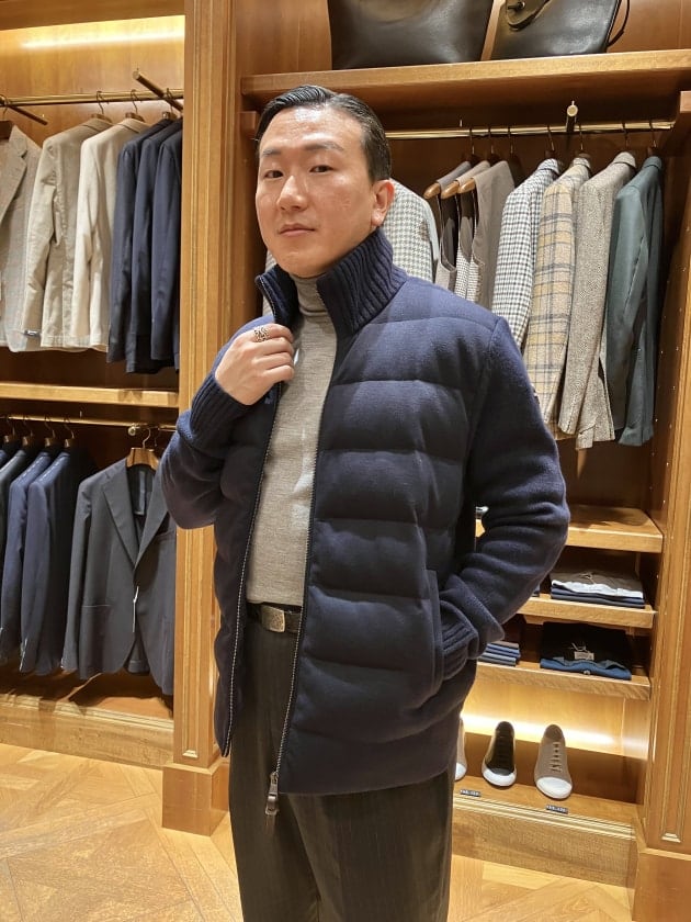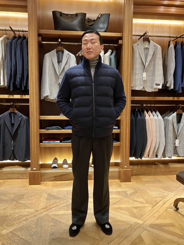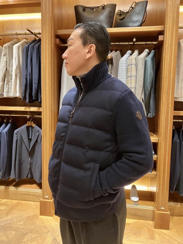 と満面の笑みを浮かべるスタッフ朴の心を鷲掴みにしている〈(MONCLERモンクレール)〉のニットダウンカーディガンをご紹介したいと思います。