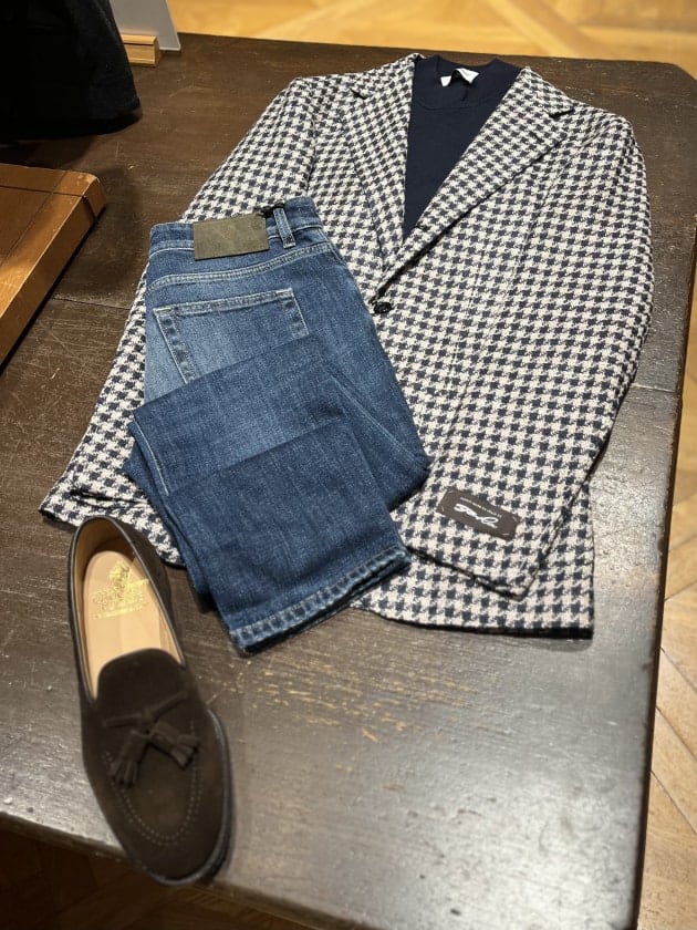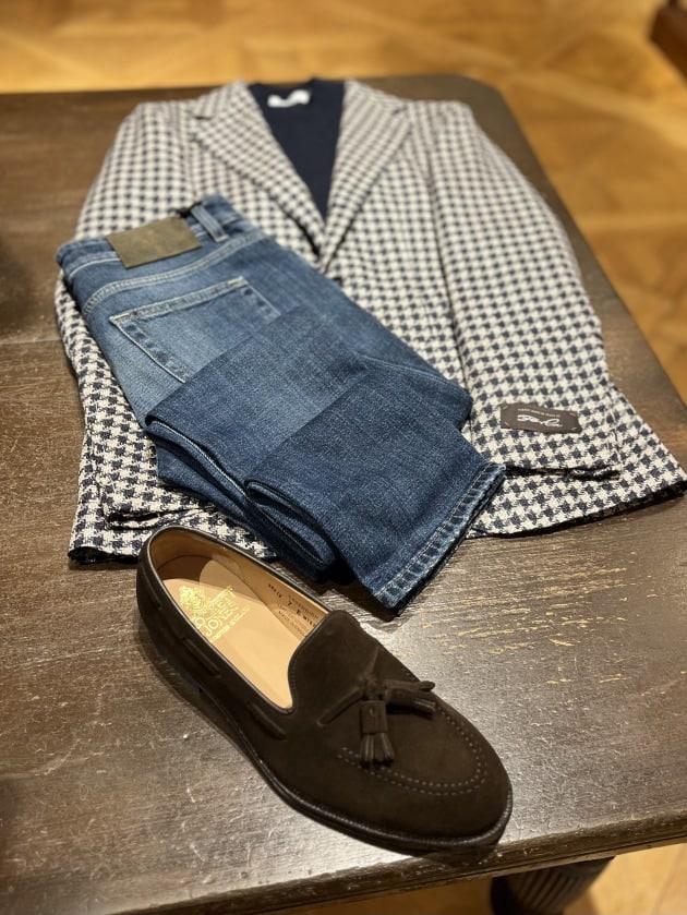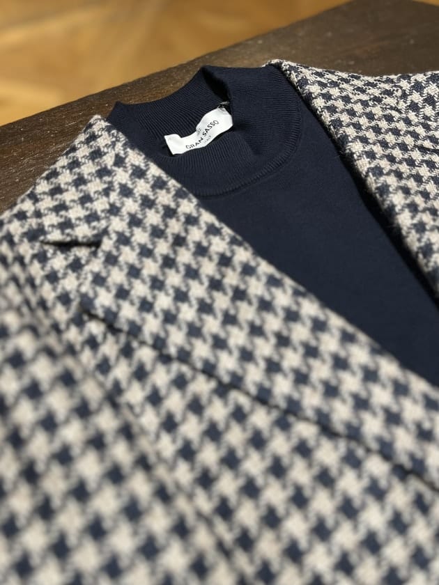 〈Brilla per il gusto〉オリジナルより、ミックスファブリック ハウンドトゥース ジャケットのご紹介です。