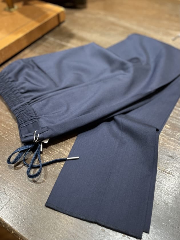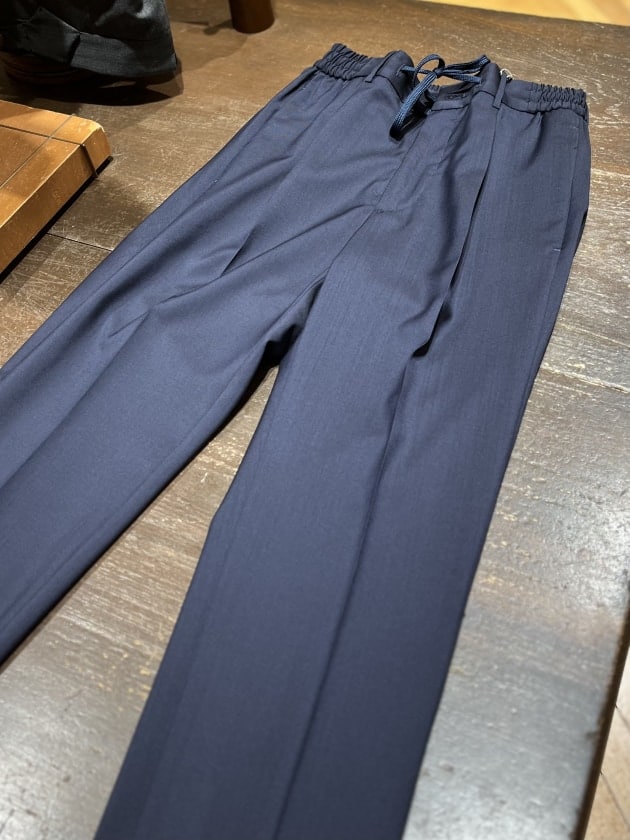 この手のドローコードパンツ色々とありますが、スーツに使用するくらいのドレッシーな生地を使った物はなかなか珍しい気がします。