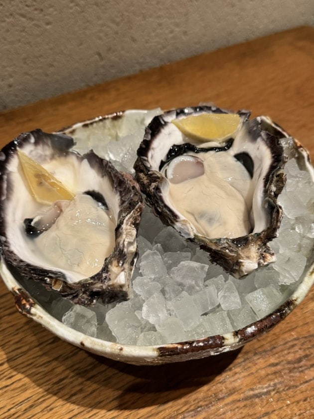 真牡蠣にしては身の入り方がそこそこで、食べ応えのあるひと粒でした。