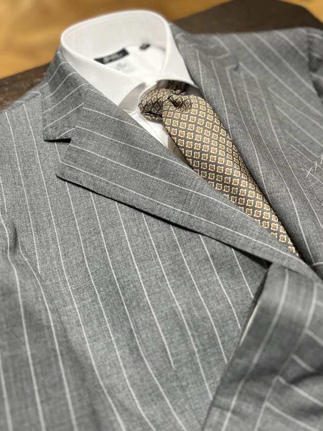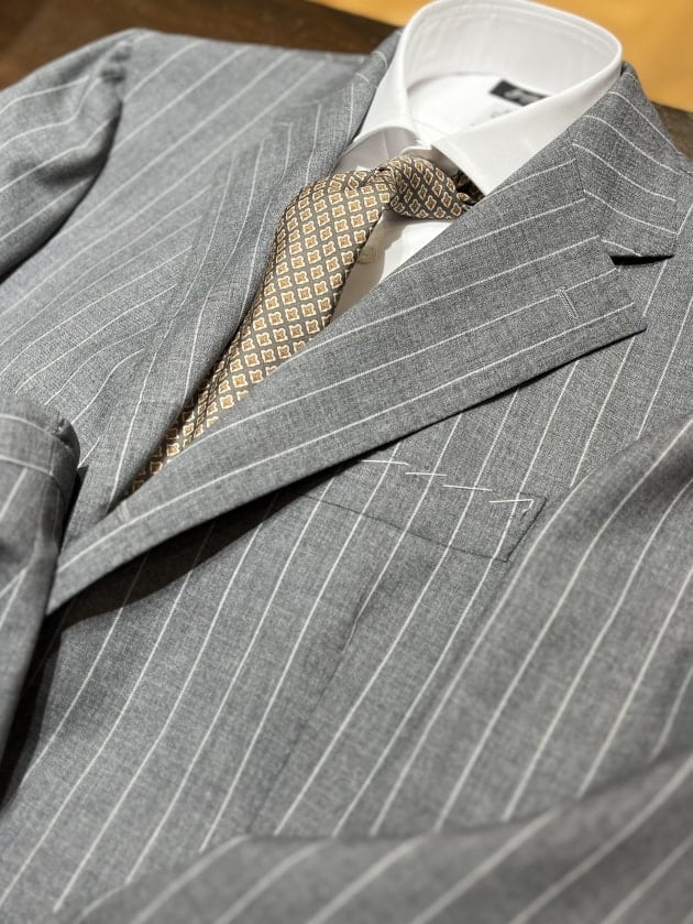 コーディネートを組んでみました。ネクタイやシャツの変化で幅広いバリエーションをお楽しみいただけるかなと思います。