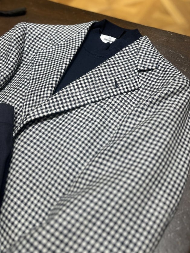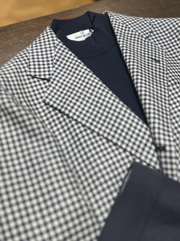 春夏のシェパードチェックジャケット。爽やかなカラーリングで大人の装いを楽しんでみてはいかがでしょうか。