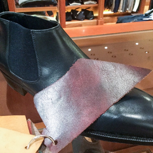 陰影のある特徴的な革にダークブラウンやブラックのクリームで深みを出していくと、よりパーソナルな一足になりますよ。