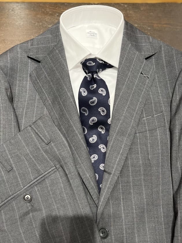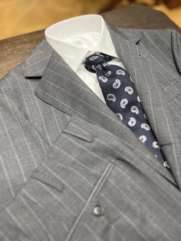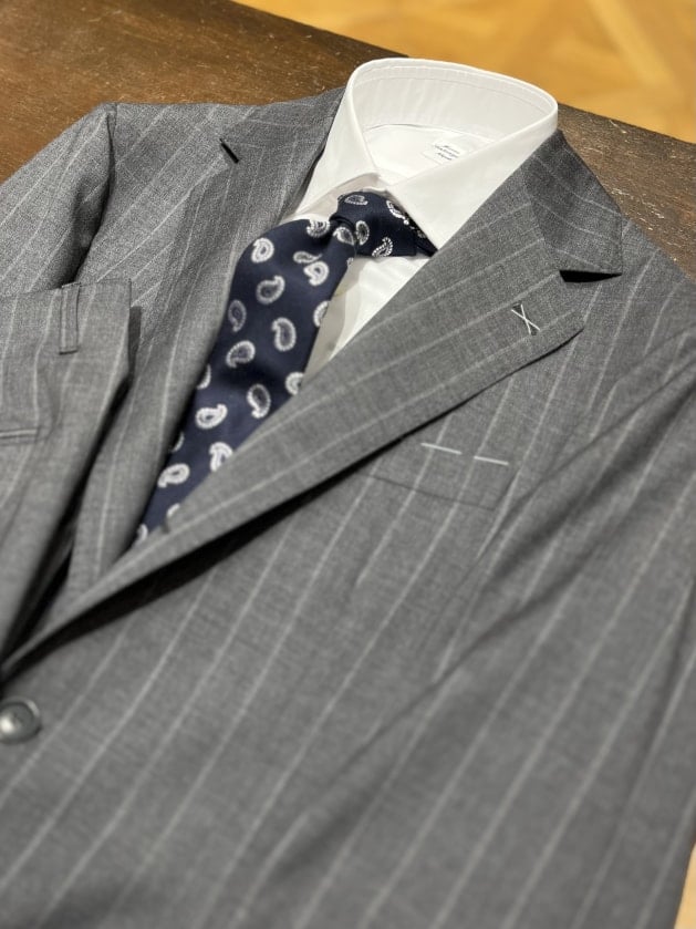 中庸的なGREYということもあり、ストライプ柄が初めての方、または久しぶりな方にもお気軽にお召しいただける印象です。