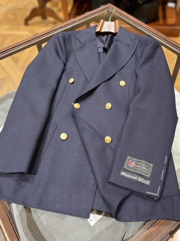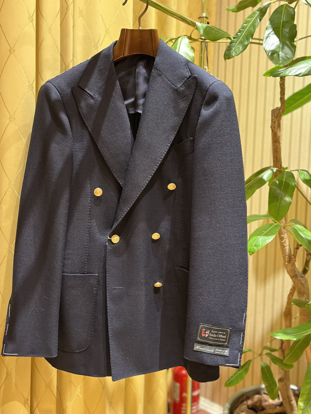 〈BEAMS F〉オリジナルより、HANDMADE SAVILE CLIFFORD ウールモヘヤ ダブルブレスト ブレザーです。